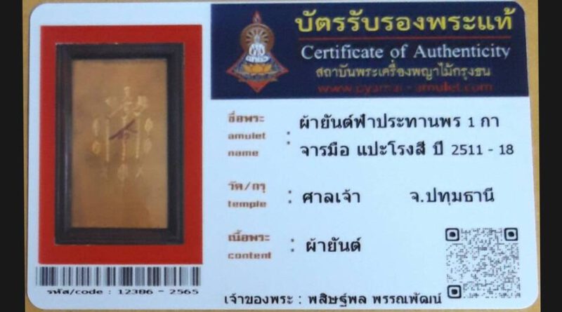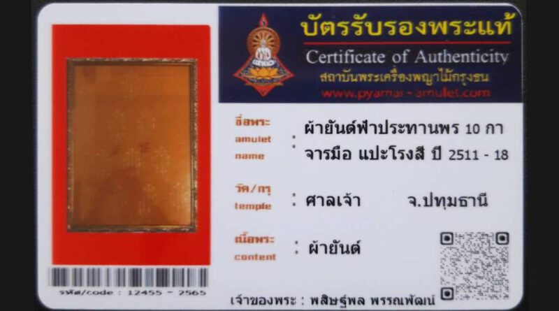 ดูเพิ่มเติมเจ้าของพระ ร้านการันตีพระ รหัสบัตร 12424 – 2565