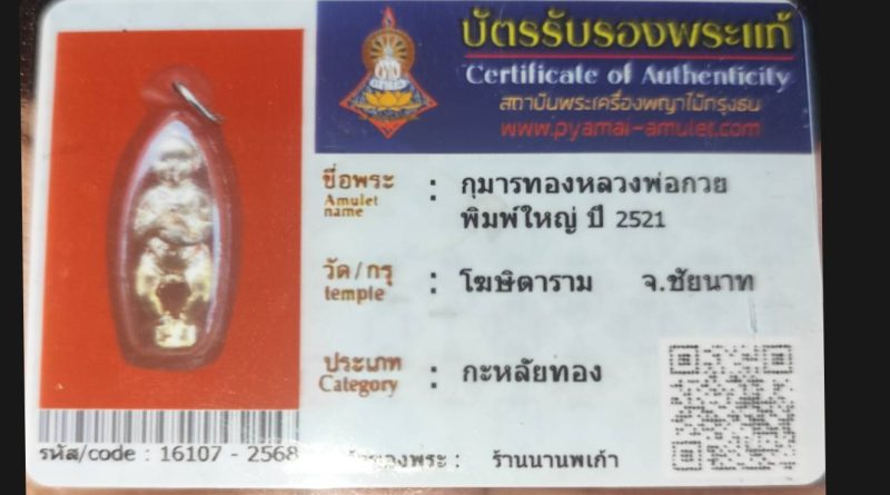 ดูเพิ่มเติมเจ้าของพระ Amulet Cho .. รหัสบัตร 16047 – 2568