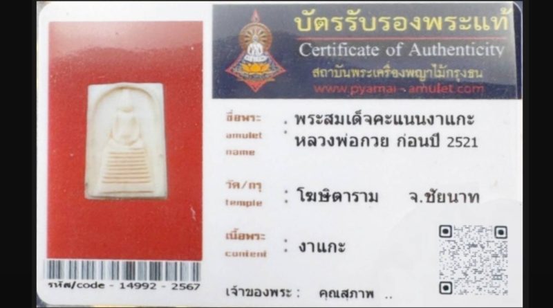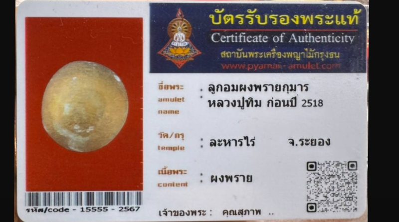 เจ้าของพระ คุณสุภาพ.. รหัสบัตร 15555 – 2567