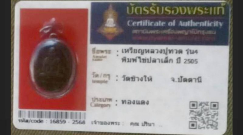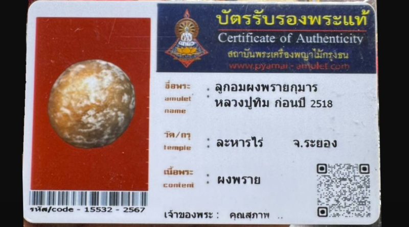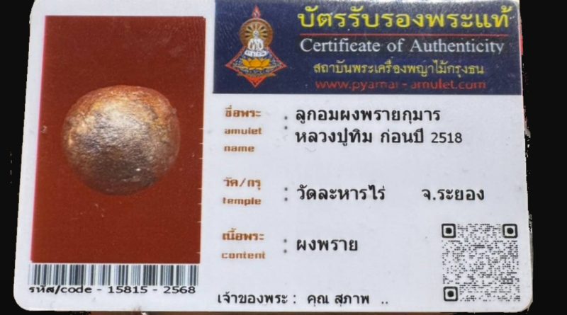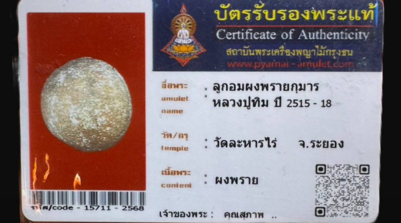 เจ้าของพระ คุณสุภาพ.. รหัสบัตร 15711 – 2568