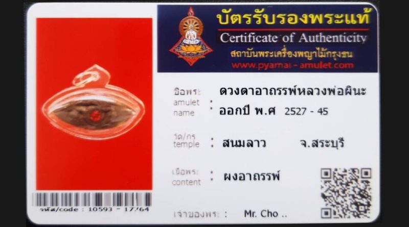 เจ้าของพระ Mr.Cho.. รหัสบัตร 10593 – 17764