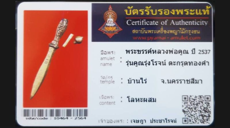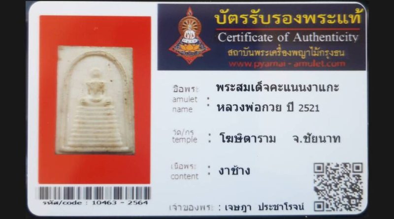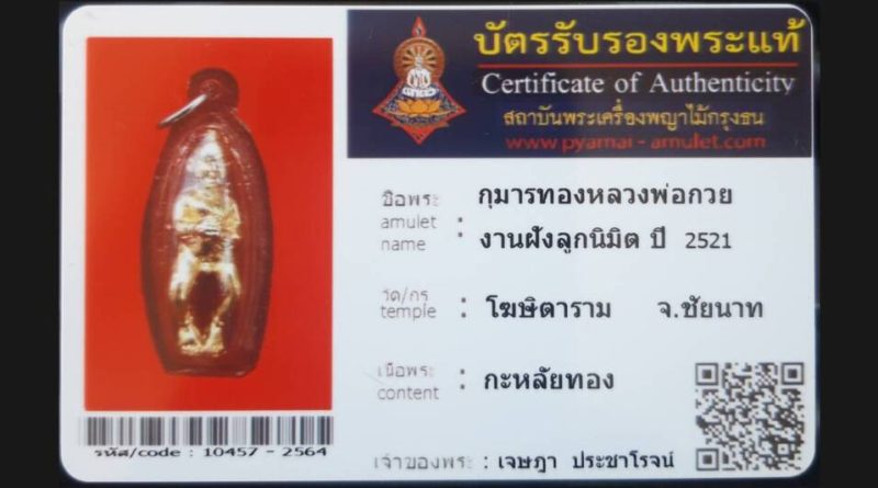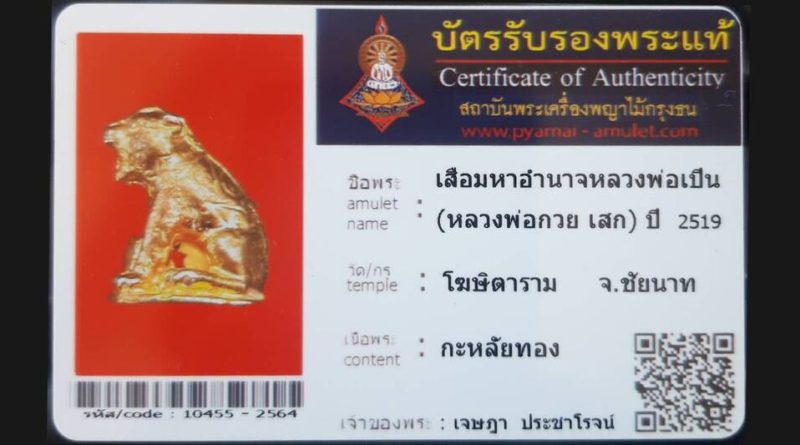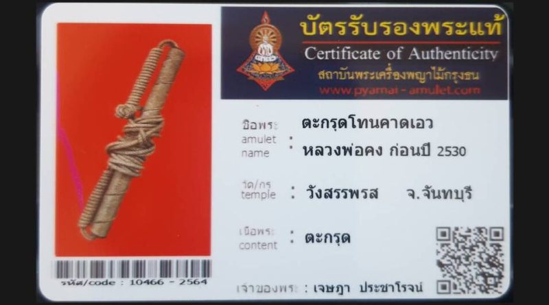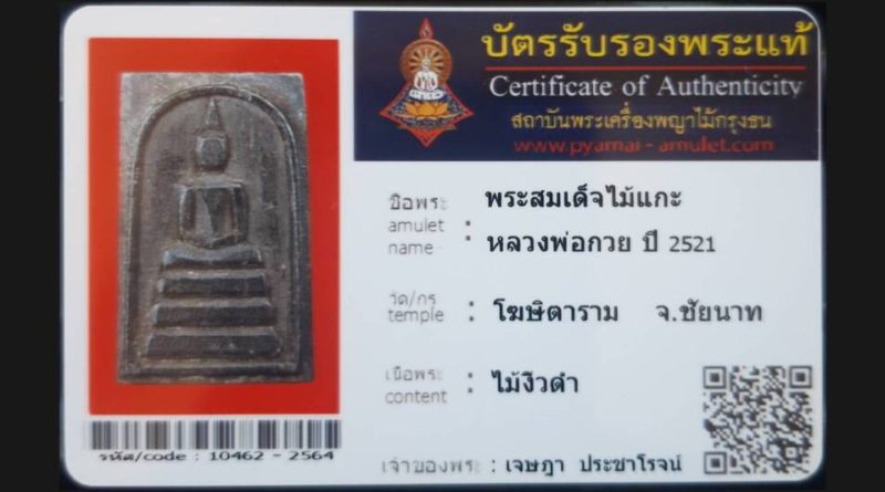 เจ้าของพระ คุณเจษฎา ประชาโรจน์ รหัสบัตร 10455 – 2564อ