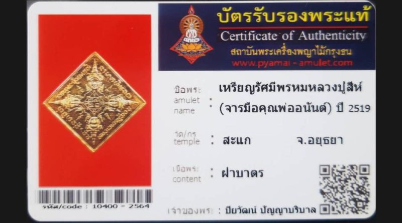 ดูเพิ่มเติมเจ้าของพระ คุณปิยวัฒน์ ปัญญาบริบาล รหัสบัตร 10400 – 2564