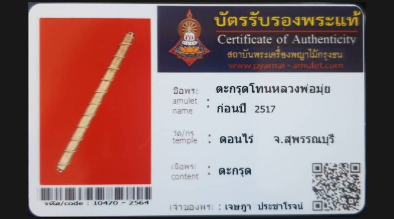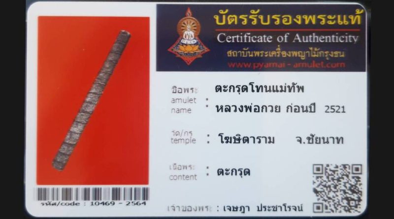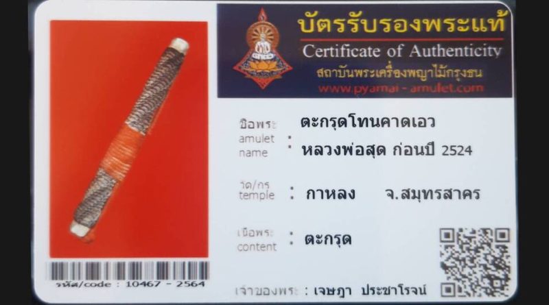 เจ้าของพระ คุณเจษฎา ประชาโรจน์ รหัสบัตร 10467 – 2564