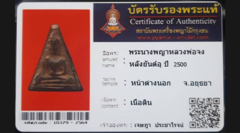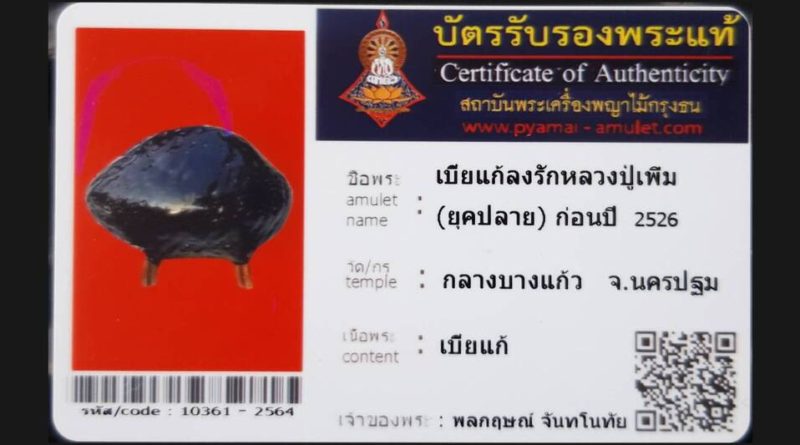 เจ้าของพระ คุณพลกฤษณ์ จันทโรทัย รหัสบัตร 10361 – 2564