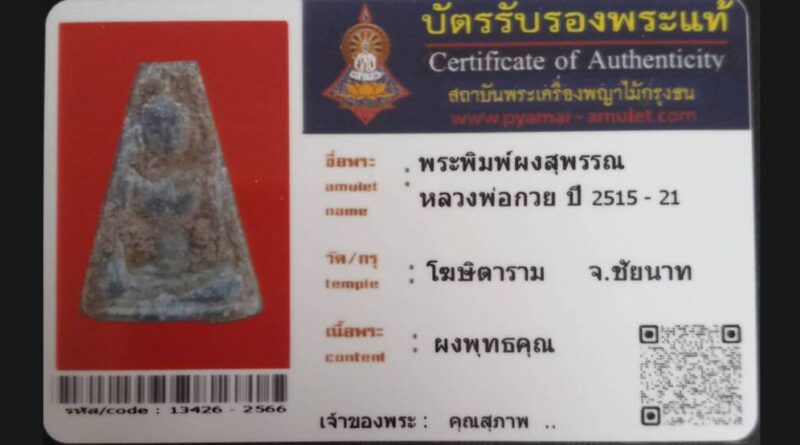 ดูเพิ่มเติมเจ้าของพระ การันตีพระ รหัสบัตร