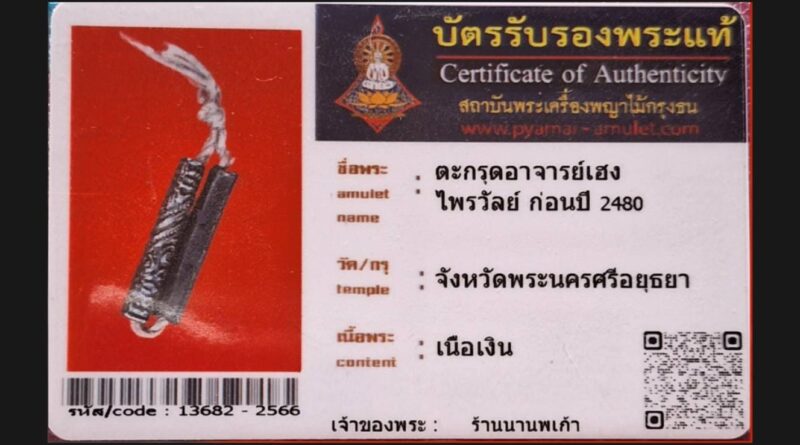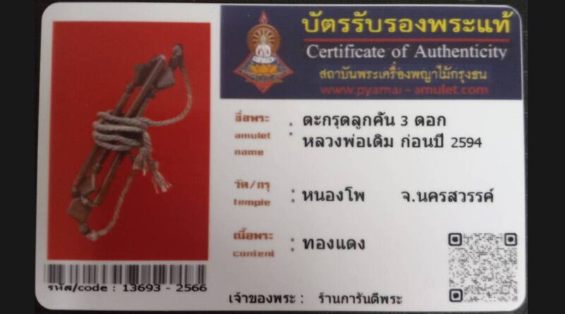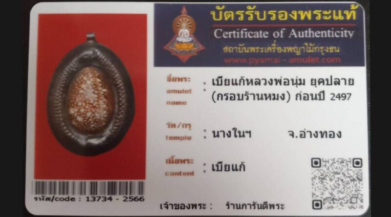 เจ้าของพระ ร้านการันตีพระ รหัสบัตร 13693 – 2566