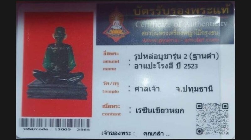 ดูเพิ่มเติมเจ้าของพระ คุณกล้า.. รหัสบัตร 13005 – 2565