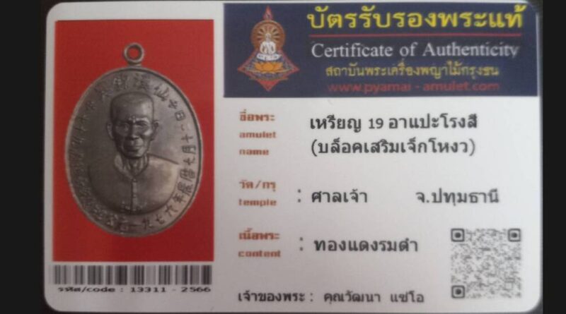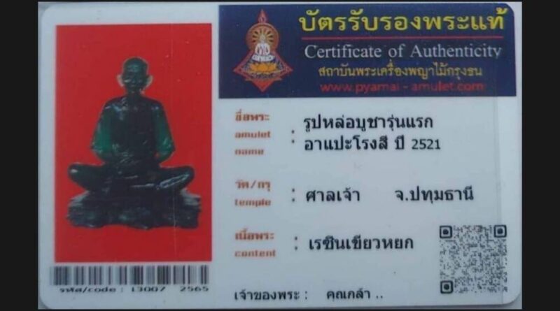 ดูเพิ่มเติมเจ้าของพระ คุณกล้า.. รหัสบัตร 13007 – 2565