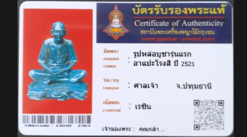 เจ้าของพระ คุณกล้า.. รหัสบัตร 13078 – 2565