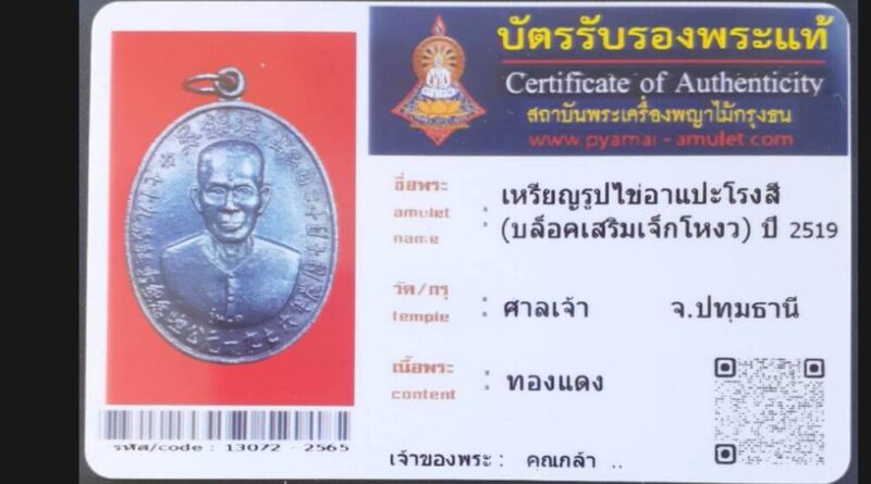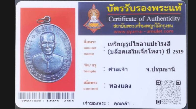 ดูเพิ่มเติมเจ้าของพระ คุณกล้า.. รหัสบัตร 13050 – 2565