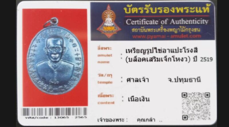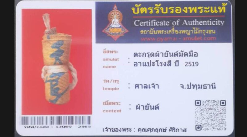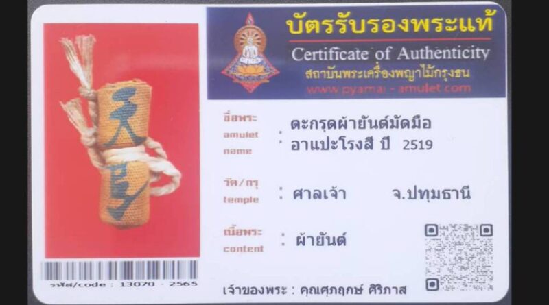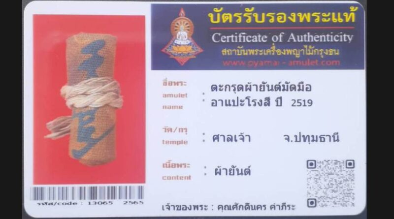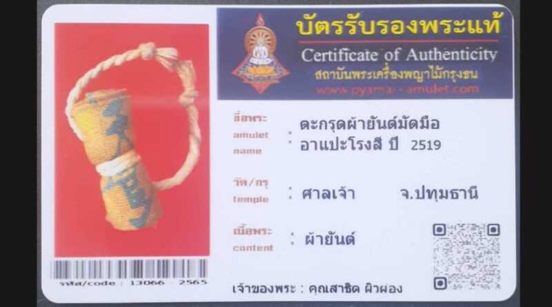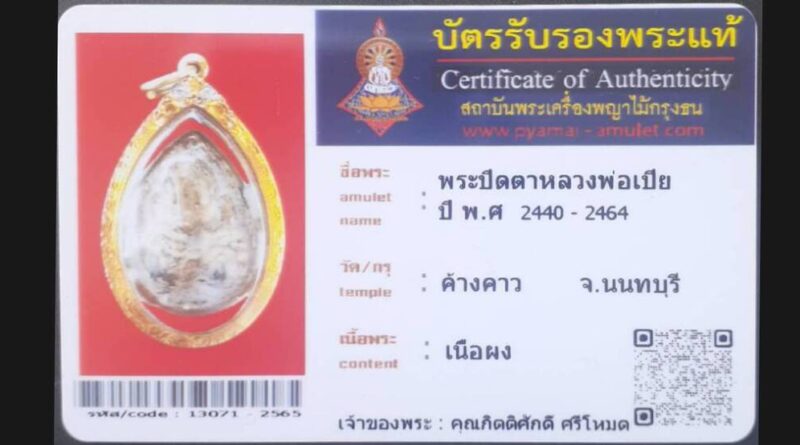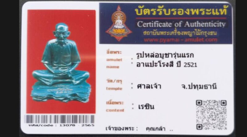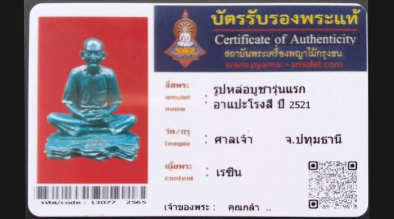 เจ้าของพระ คุณกล้า.. รหัสบัตร 13078 – 2565
