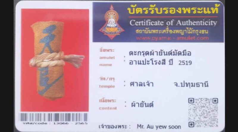ดูเพิ่มเติมเจ้าของพระ Mr. Au yew soon รหัสบัตร 13066 – 2565