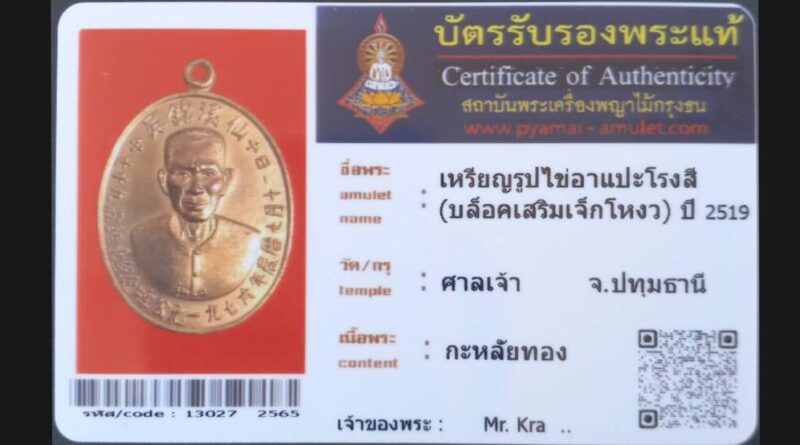 ดูเพิ่มเติมเจ้าของพระ Mr. Kra.. รหัสบัตร 13026 – 2565