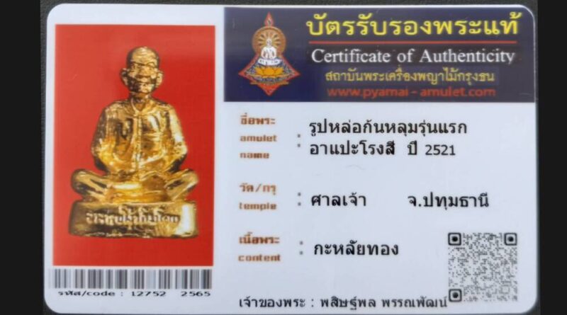 ดูเพิ่มเติมเจ้าของพระ Ch’ng teng siong รหัสบัตร 12621 – 2565