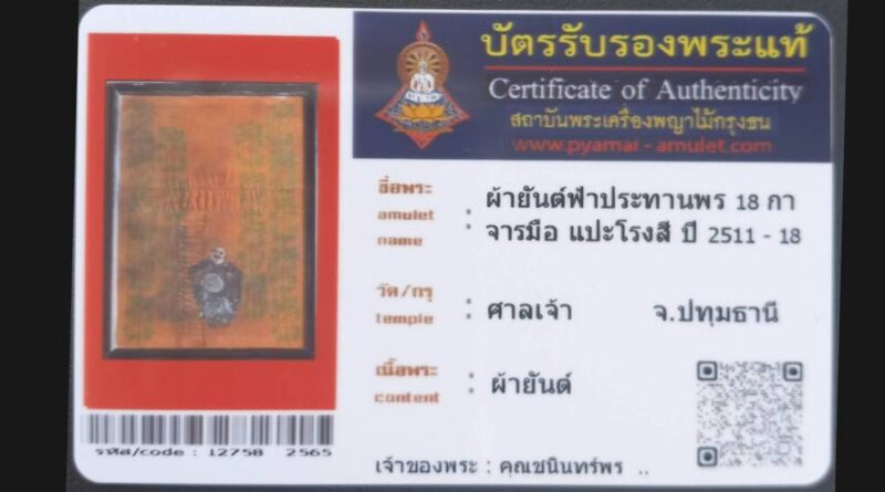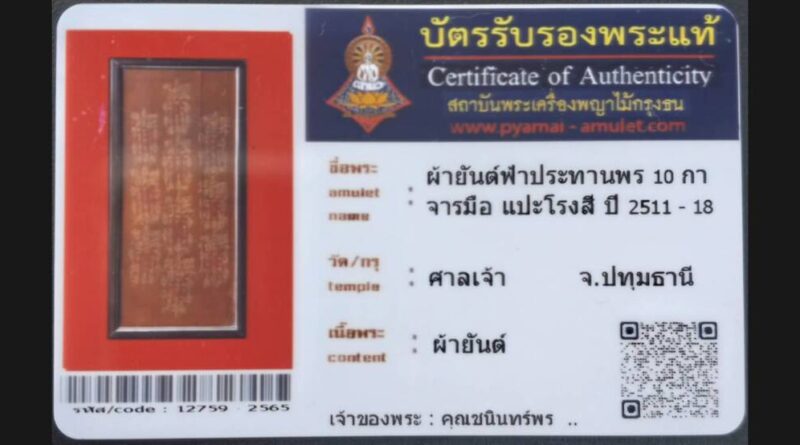 ดูเพิ่มเติมเจ้าของพระ คุณชนินทร์พร รหัสบัตร 12758 – 2565
