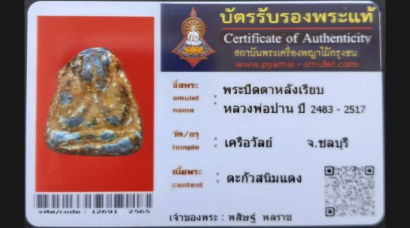 เจ้าของพระ : คุณพสิษฐ์ พลราช รหัสบัตร 12691 – 2565