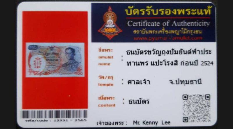 ดูเพิ่มเติมเจ้าของพระ Mr.Kenny Lee รหัสบัตร 12331 – 2565