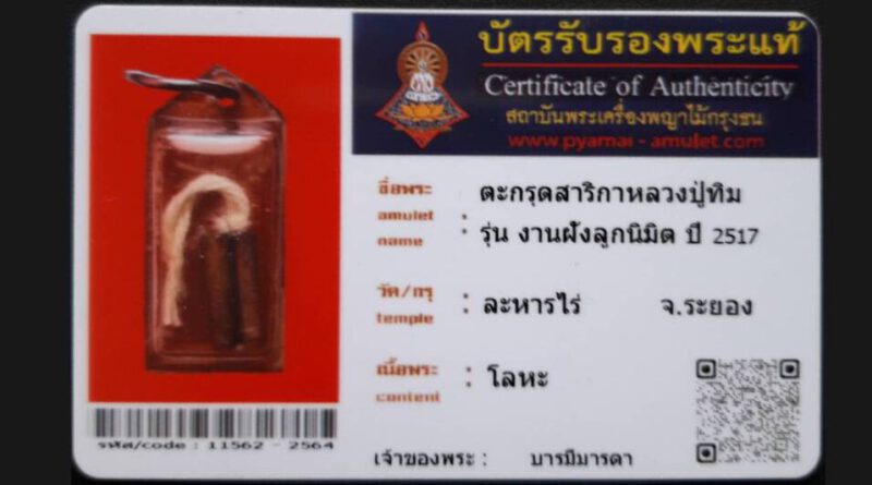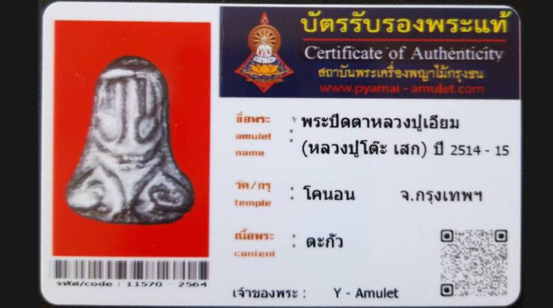 เจ้าของพระ Y – Amulet รหัสบัตร 11573 – 2564