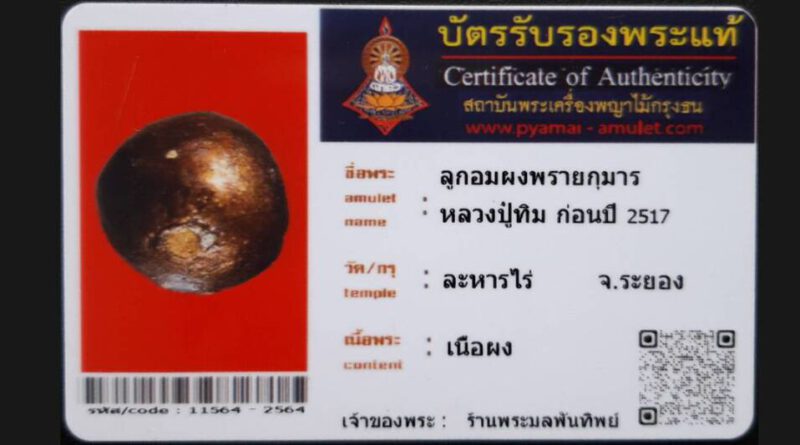 ดูเพิ่มเติมเจ้าของพระ Y – Amulet รหัสบัตร 11568 – 2564