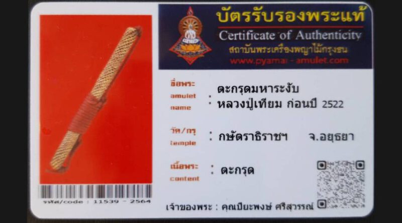ดูเพิ่มเติมเจ้าของพระ ร้านการันตีพระ รหัสบัตร 11339 – 2564