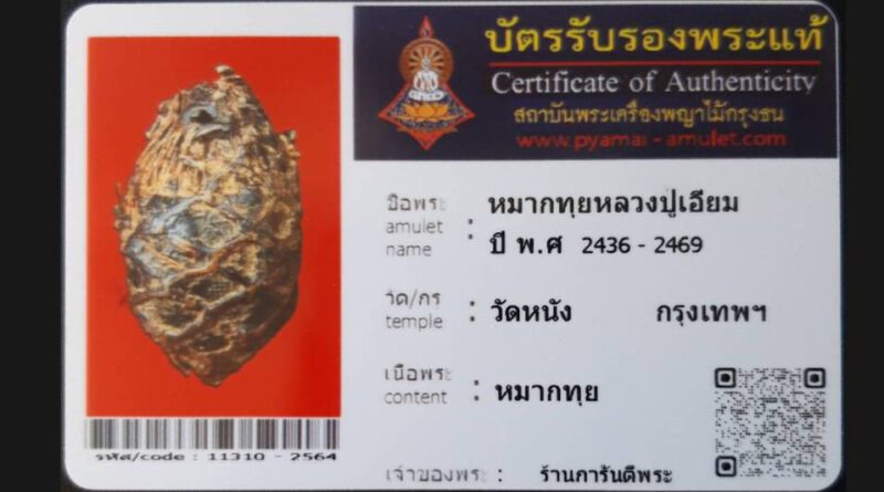ดูเพิ่มเติมเจ้าของพระ ร้านการันตีพระ รหัสบัตร 11311 – 2564