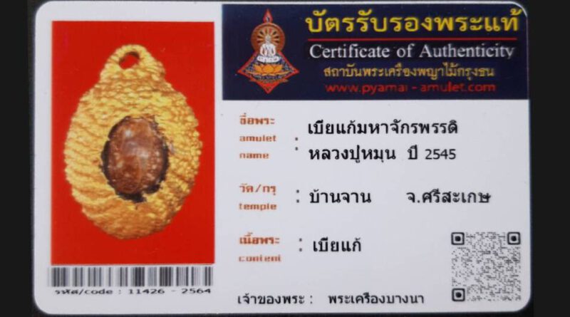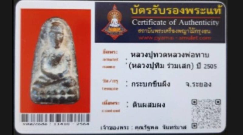 เจ้าของพระ ร้านการันตีพระ รหัสบัตร 11504 – 2564