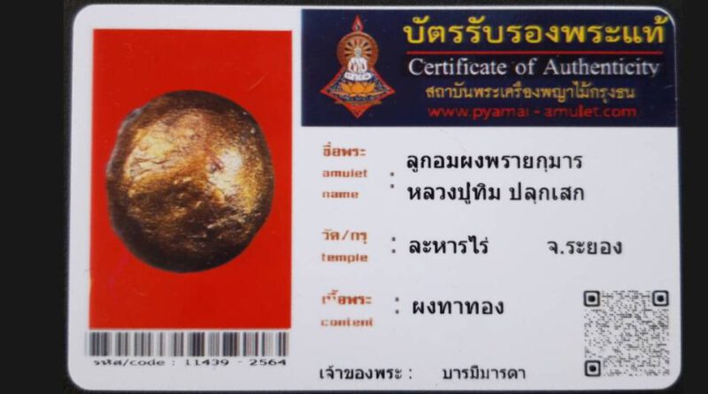 เจ้าของพระ พระเครื่องบางกอก รหัสบัตร 11425 – 2564
