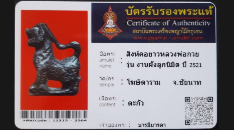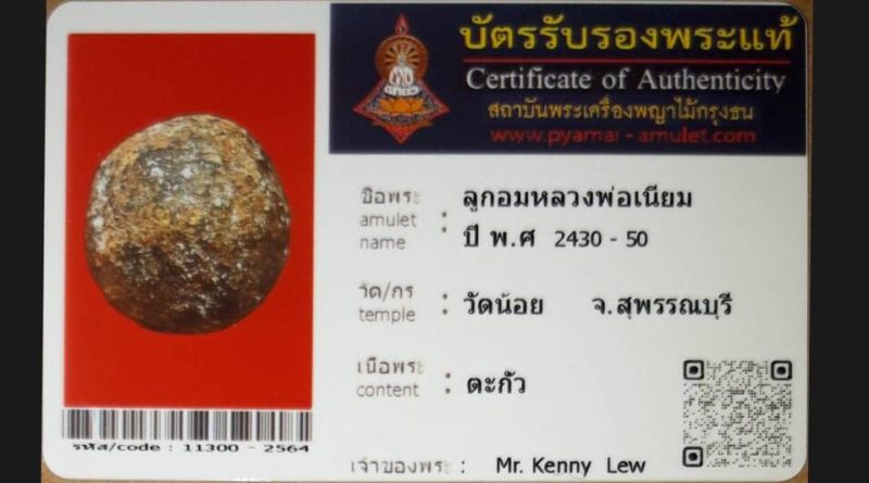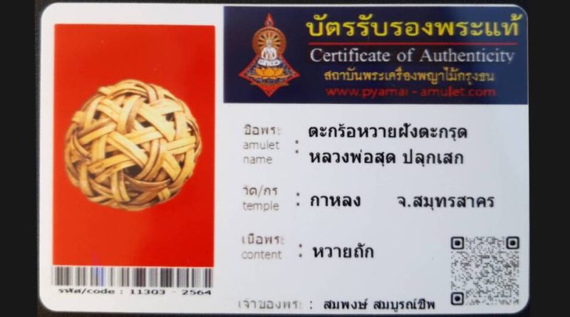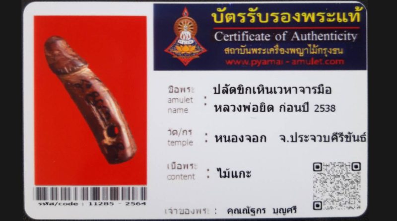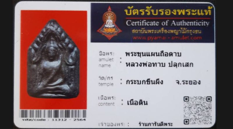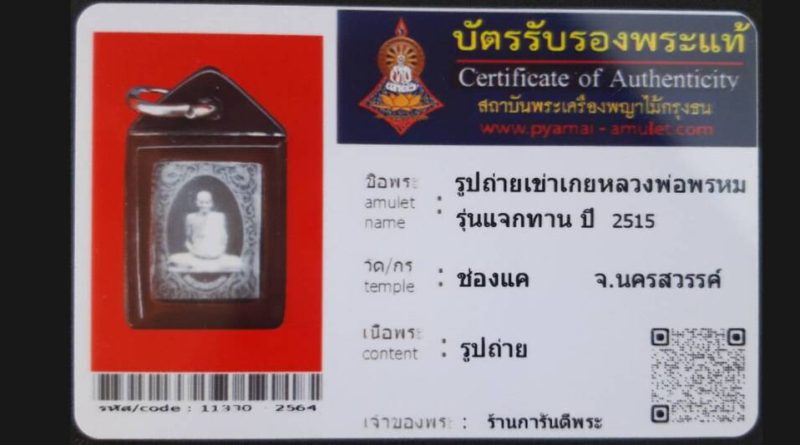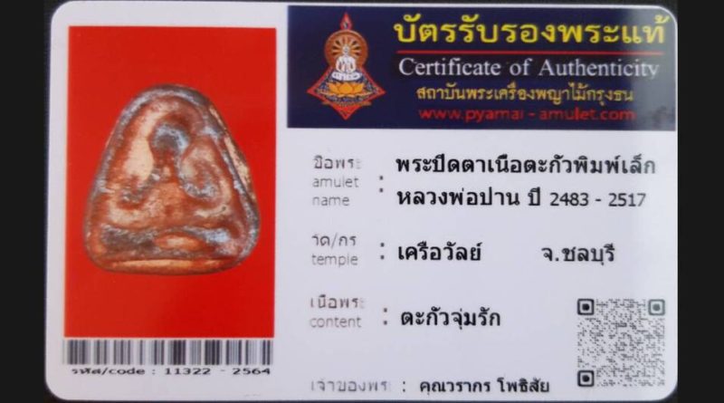 เจ้าของพระ ร้านการันตีพระ รหัสบัตร 11330 – 2564