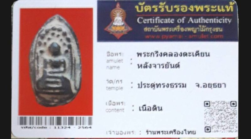 ดูเพิ่มเติมเจ้าของพระ ร้านการันตีพระ รหัสบัตร 11312 – 2564