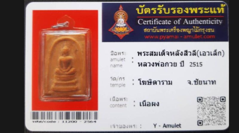 เจ้าของพระ Y – Amulet รหัสบัตร 11191 – 2564