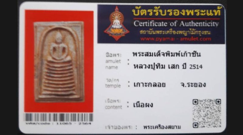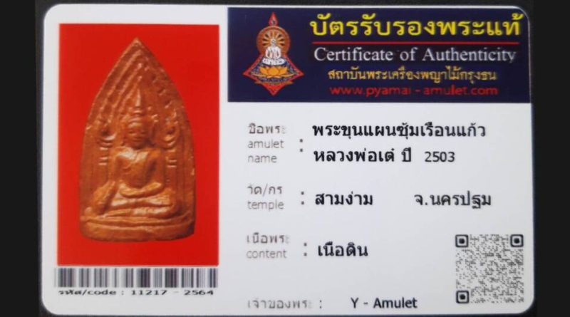 เจ้าของพระ Y – Amulet รหัสบัตร 11214 – 2564