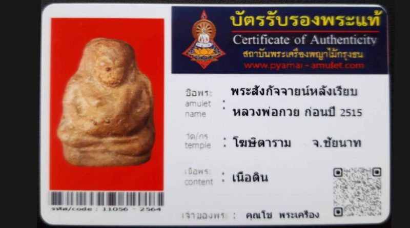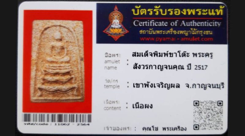 เจ้าของพระ คุณโช พระเครื่อง รหัสบัตร 11062 – 2564