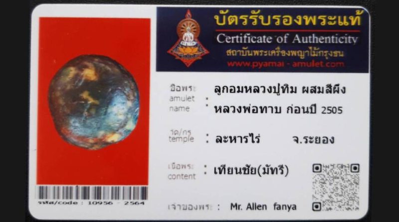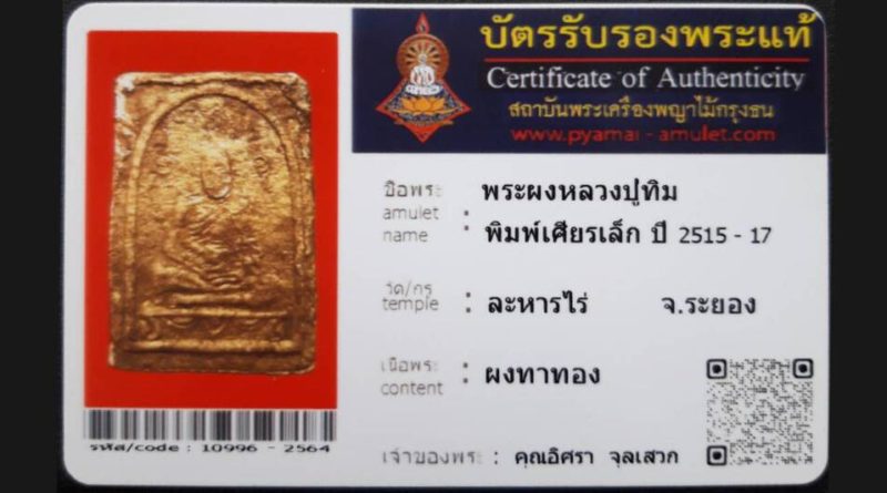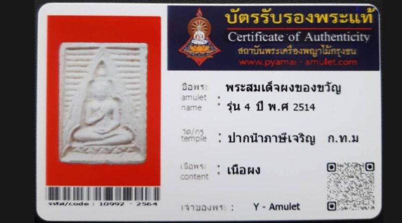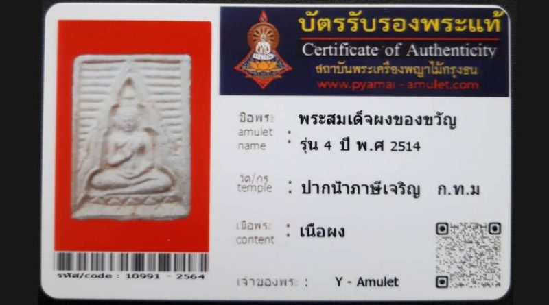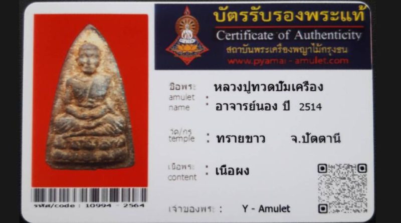 เจ้าของพระ Y – Amulet รหัสบัตร 10991 – 2564