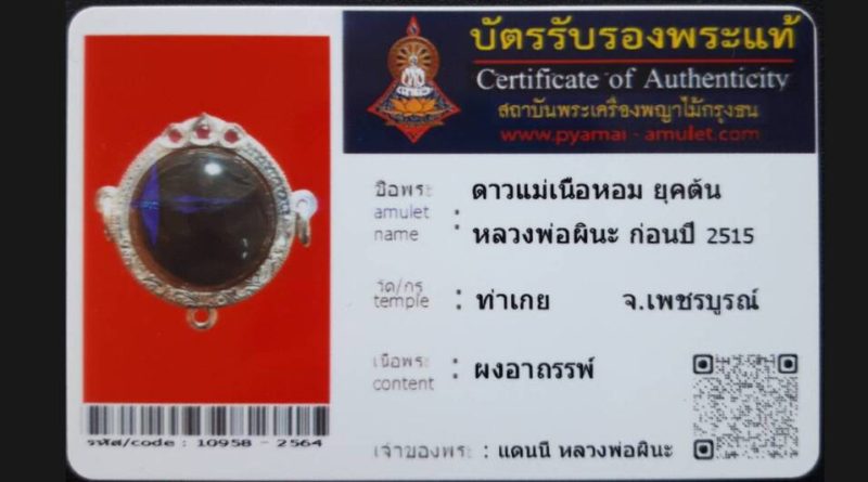เจ้าของพระ คุณแดนนี้ โซว รหัสบัตร 10967 – 2564