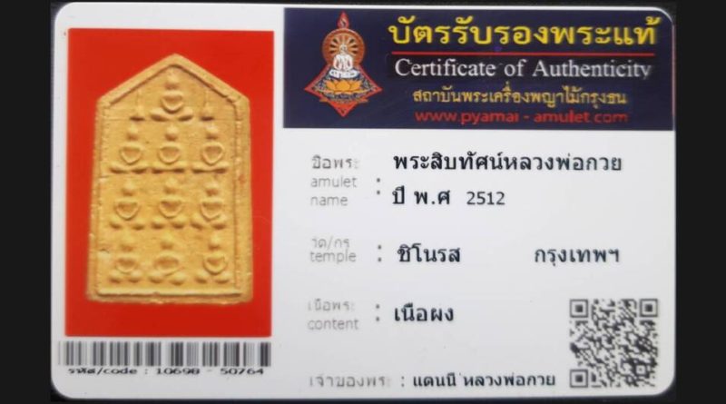 เจ้าของพระ คุณโช พระเครื่อง รหัสบัตร 10736 – 80764