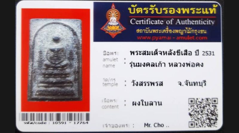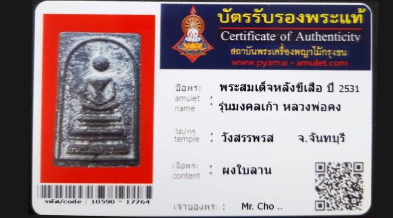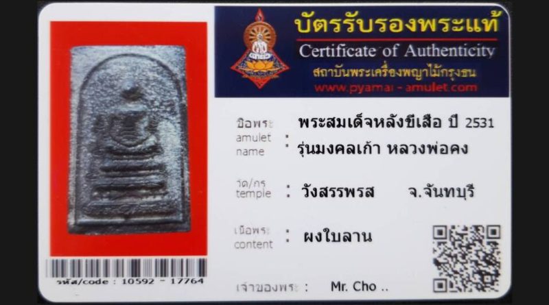 ดูเพิ่มเติมเจ้าของพระ ร้านการันตีพระ รหัสบัตร 10692 – 90564