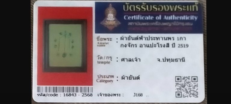 รหัสบัตร 16843 – 2568 เจ้าของพระ J168