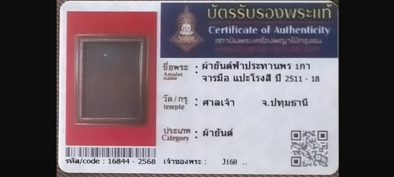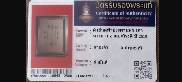 รหัสบัตร 16845 – 2568 เจ้าของพระ J168