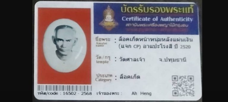 บัตรที่ผ่านการรับรองพระแท้จากสถาบันของเรา สามารถค้นหาได้ด้วยชื่อของพระเครื่องของคุณ