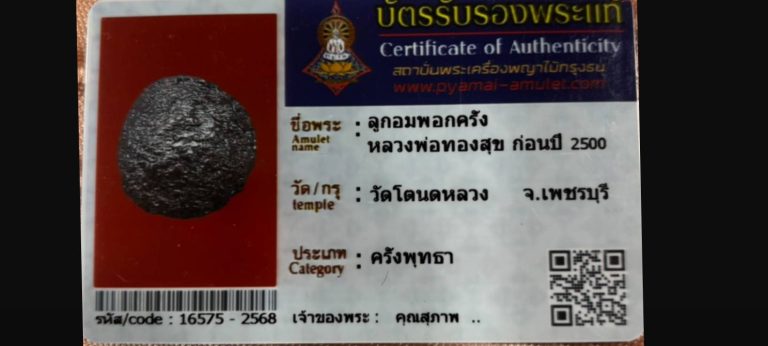 เจ้าของพระ คุณสุภาพ.. รหัสบัตร 16575 – 2568