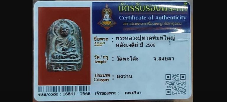 เจ้าของพระ คุณสุภาพ รหัสบัตร 16696 – 2568
